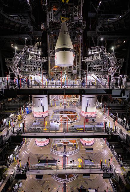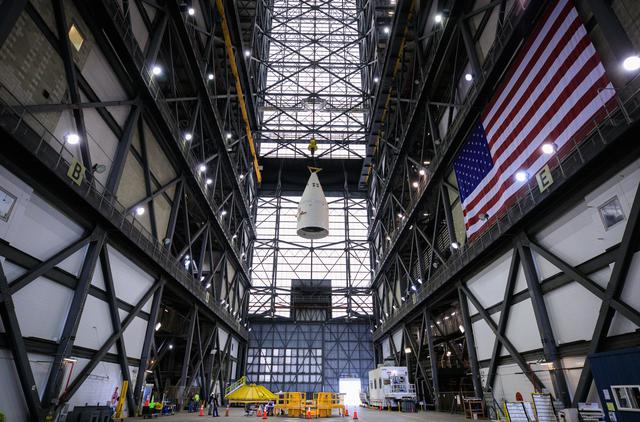 DetailsKSC-20210302-MH-FMX01_0002_Artemis_I_RH_Forward_Assembly_Lift_and_Mate-3270461